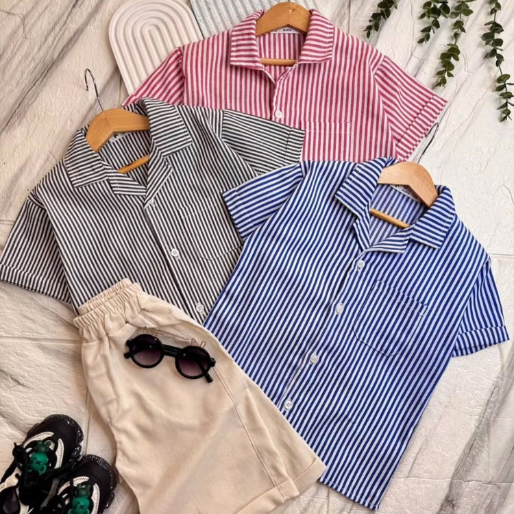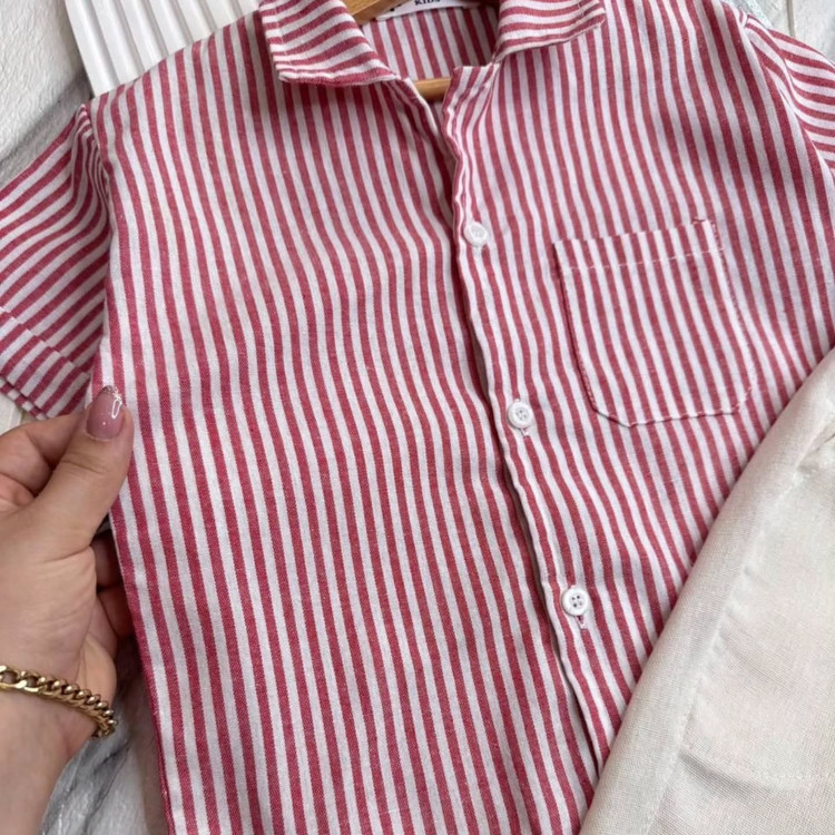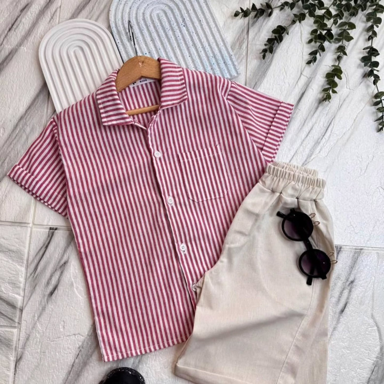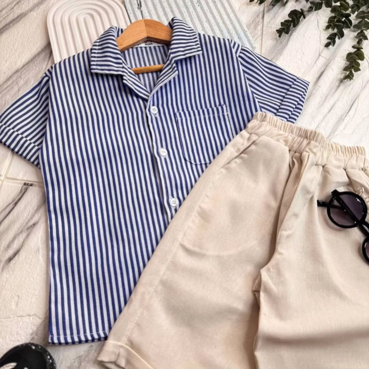 پیراهن و شلوارک بچگانه پسرانه مدل یقه انگلیسی
