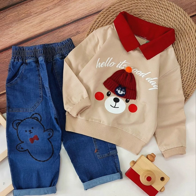 جنس بلوز دورس پنبه لاکرادار و شلوار جین اسلپ دار کیفیت تضمینی سایزبندی : سایز۴۰: قدبلوز۴۰. پهنا۳۴، قدشلوار۵۶ سایز۴۵: قدبلوز۴۵، پهنا۳۸، قدشلوار۶۵ سایز۵۰: قدبلوز۵۰، پهنا۴۱، قدشلوار۷۰ سایز ۵۵: قدبلوز۵۵، پهنا۴۴، قدشلوار۷۷