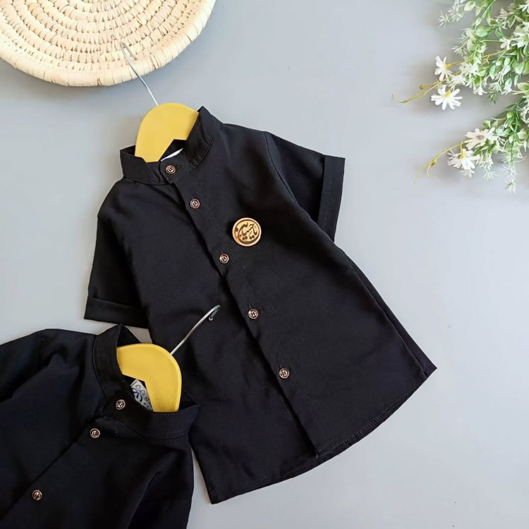پیراهن مشکی محرمی بچگانه پسرانه مدل یقه ذاکری