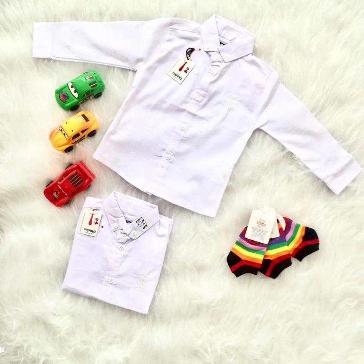 پیراهن سفید آستین بلند بچگانه پسرانه مجلسی
